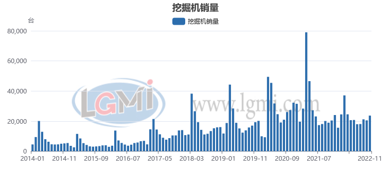 据中国工程机械工业协会统计数据显示,2022年1-11月,26家挖掘机制造企业共销售挖掘机244477台(详见图10),同比下降23.3%;其中国内145738台,同比下降43.7%;出口98739台,同比增长64.9%。