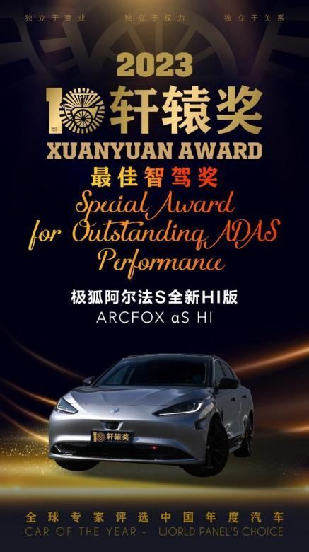 12月16日,极狐阿尔法S全新HI版凭借高阶智驾领域的出色表现,从一众车型中杀出重围,获得轩辕奖特别奖——最佳智驾奖。12月28日,2022(第十二届)影响中国·中国汽车电视总评榜颁奖盛典隆重举行。极狐阿尔法S全新HI版又凭借优秀的智驾实力,斩获“年度智驾新车“大奖。2023年1月5日,第四届(2023)中国汽车与出行未来峰会暨2022-2023搜狐汽车年度大选颁奖盛典在海口举行,极狐阿尔法S全新HI版再度崭获“年度智能车“大奖,“智驾第一车”之称当之无愧。