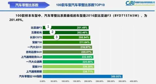 最近,中保研发布了最新一期汽车零整比数据,涵盖了39个汽车品牌的100款车型。