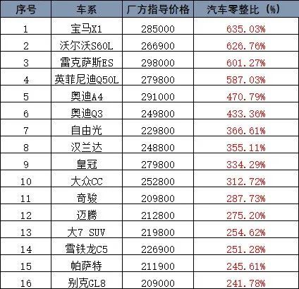 手机访问:wap.265xx.com2021年汽车零整比排行榜:9.个前大灯就可以买一辆新车?