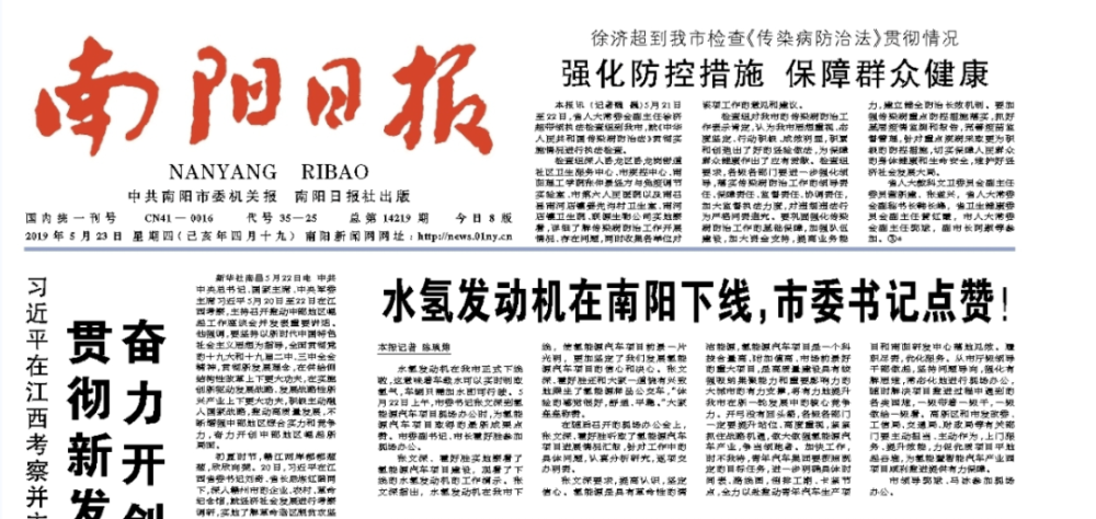 然而,本来已经半身入土的青年汽车,突然在2019年宣布“水氢发动机”下线,消息一出便引发了巨大关注。2019年5月23日,南阳日报发布《水氢发动机在南阳下线,市委书记点赞》一文,称南阳水氢发动机下线,可实现通过车载水实时制取氢气,车辆只需加水即可行驶。