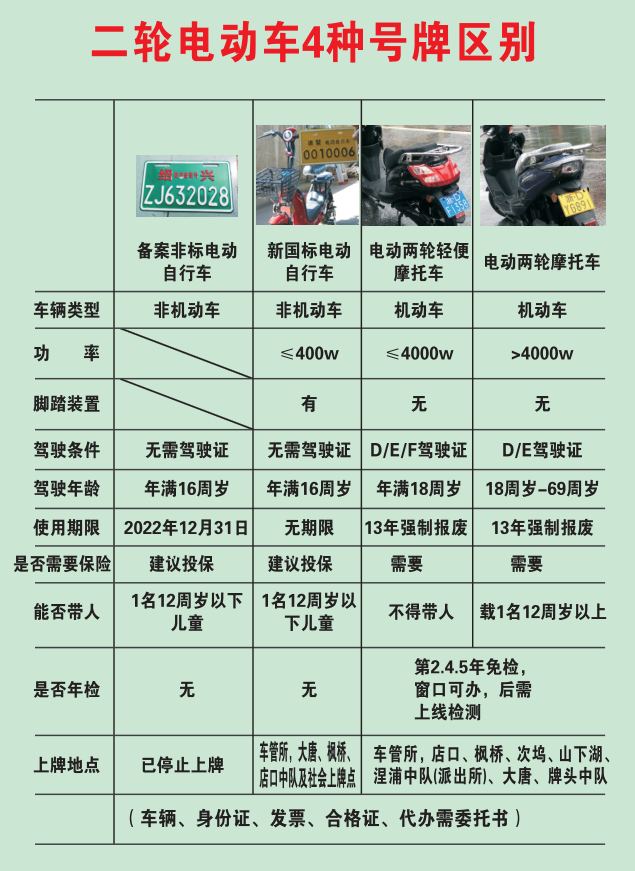新国标电动车(小黄牌):无需驾驶证、建议投保、可带1名12周岁以下儿童,可去车管所、大唐、枫桥、店口中队以及社会上牌点上牌。