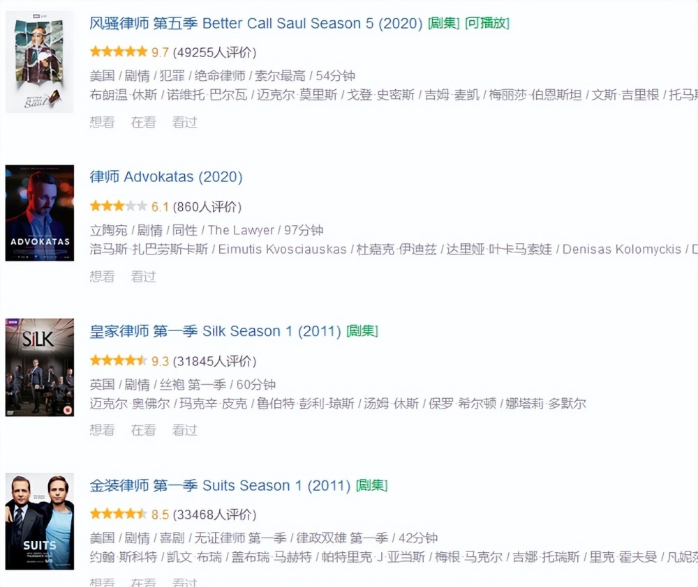 国外拍摄的律政剧,口碑都很不错,有些电视剧高达9分以上。我们的律政剧和国外的类型作品差距很大。
