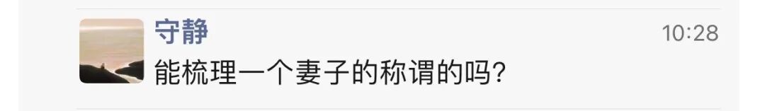 昨天,语服君推送了拾趣 | 从“郎君”到“老公”:中国丈夫称谓的“堕落史”,引来不少粉丝围观。其中有粉丝在语服君的朋友圈留言:“能梳理一个妻子的称谓的吗?”语服君回复:“安排!”