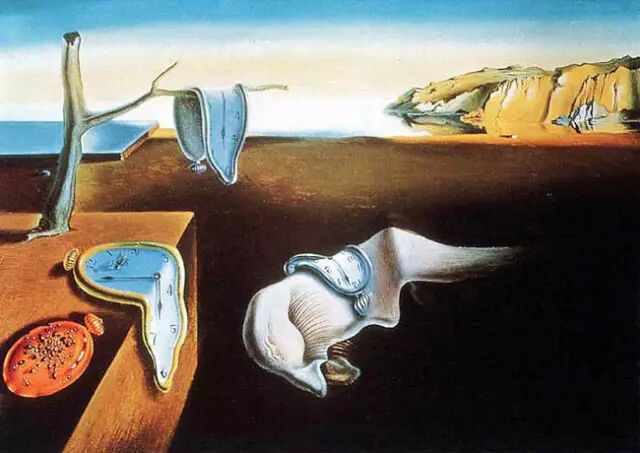 现代人的悲剧之一就是妄想与时间较量。在达利的笔下,时间变成了一块又一块软塌塌的面饼,倦怠地注视着这个光怪陆离的社会。有人认为这个融化的时钟是一滴对生命的泪,是对现代时间所带来的机械与确定性的反抗。但是当世界的不确定性被高举为理论大旗以后,又反过来吞噬了人类自己,成为悬在我们头顶的达摩克利斯之剑。