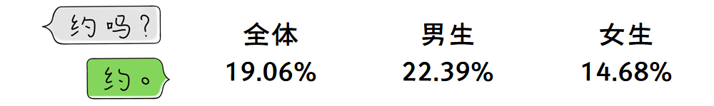 在全体大学生中,8.39%的大学生尝试过和网友“约炮”,但只有4.49%的大学生实际发生过。男生有过约炮意愿和实际发生的比例都明显高于女生。