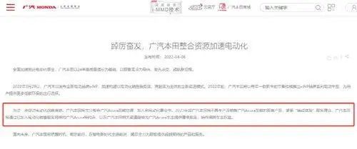 其实早在2022年4月8日,广汽本田及广汽讴歌在其官网发布通知宣布,为进一步促进电动化战略落地,合资公司广汽讴歌资源将整合进入广汽本田,加入到电动化事业中。
