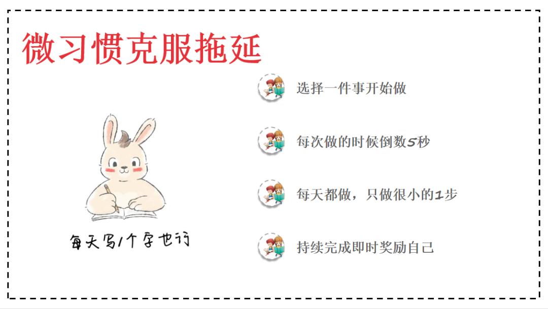 5|学生喜欢拖延怎么办?面对行动,每个人都面对着同一个大魔怪,那就是拖延。拖延是人人身上都存在的惰性,但它并不可怕,可以使用微习惯法告别拖延。
