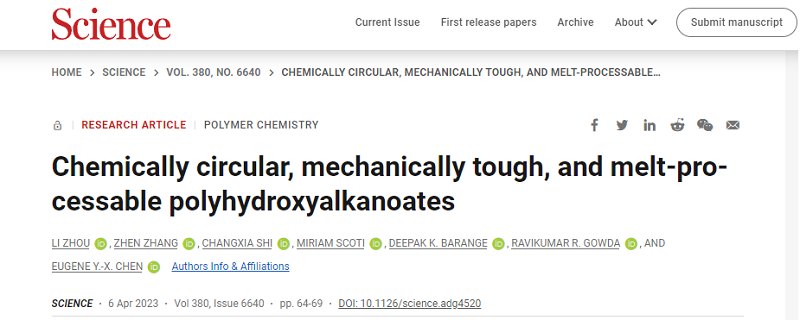 手机访问:wap.265xx.com《Science》周立博士/张震博士:可熔融加工、韧性高、可化学回收的生物塑料P