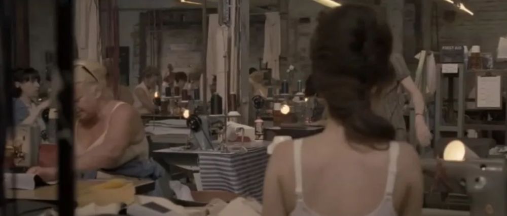 女工们一如往常地来到工厂车间,因为太过闷热,每个人坐在缝纫机前的习惯动作都是先脱掉外衣,只穿一件内衣。即便她们和所有人一样辛苦,薪资却因为性别原因,被压榨到非常低廉,但她们依然不辞辛劳地工作着。