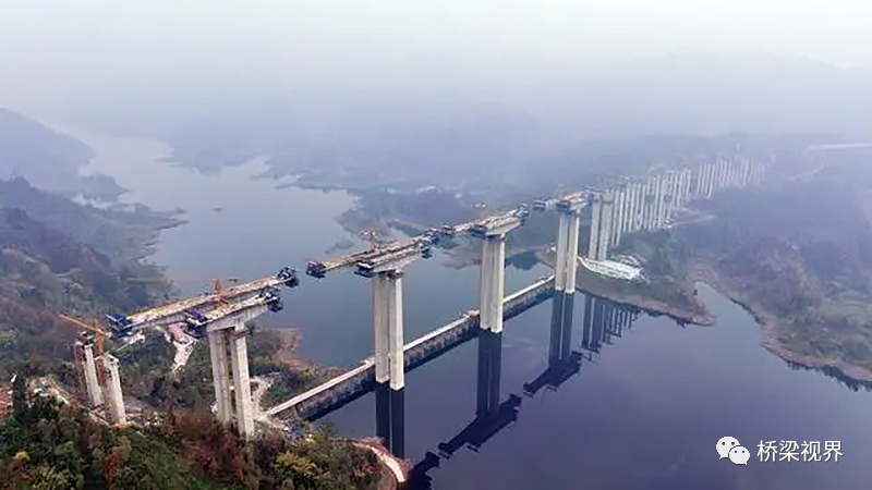 据介绍,五布河特大桥是渝湘复线高速控制性工程,跨越巴南观景口水利枢纽,主桥长730米,连续梁跨度最大180米,集高墩、大跨于一体,双向6车道,设计速度100公里/小时。