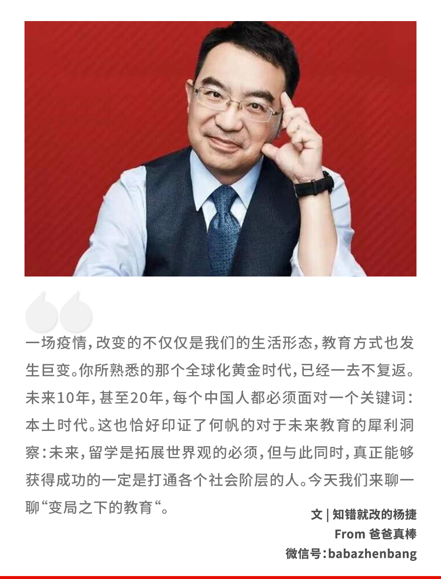 这也恰好印证了何帆的对于未来教育的犀利洞察:未来,留学是拓展世界观的必须,但与此同时,真正能够获得成功的一定是打通各个社会阶层的人。