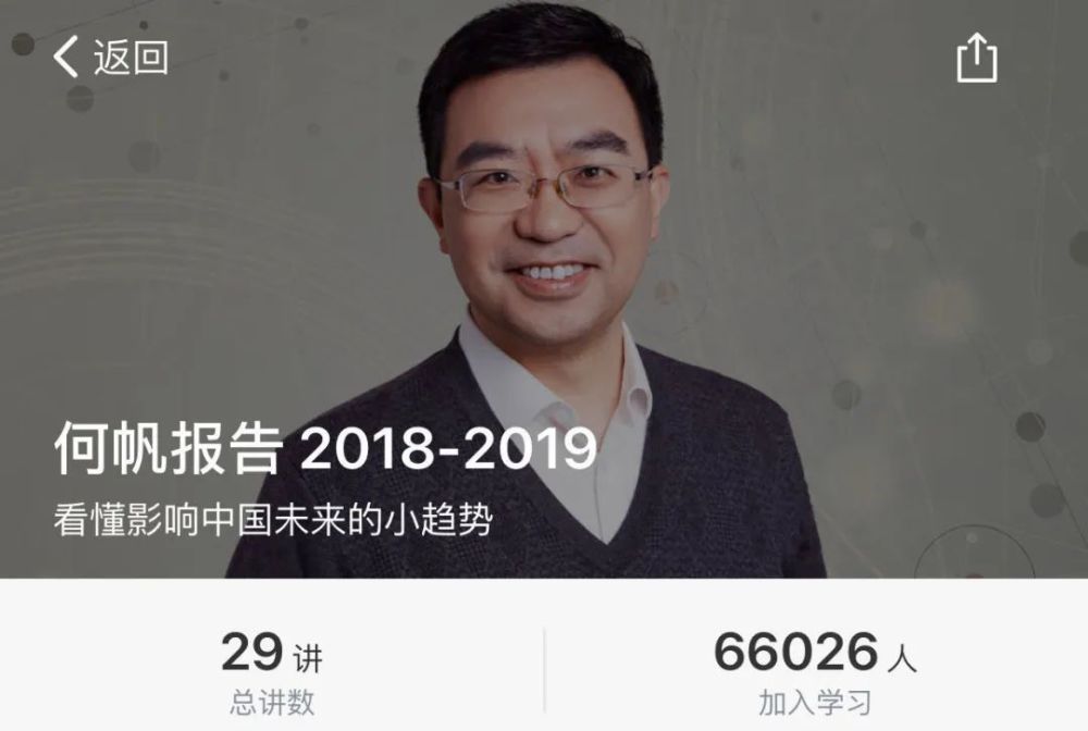 △2018年12月19日,第一卷年度报告《何帆报告2018-2019》在得到App以音频课程的形式发布。