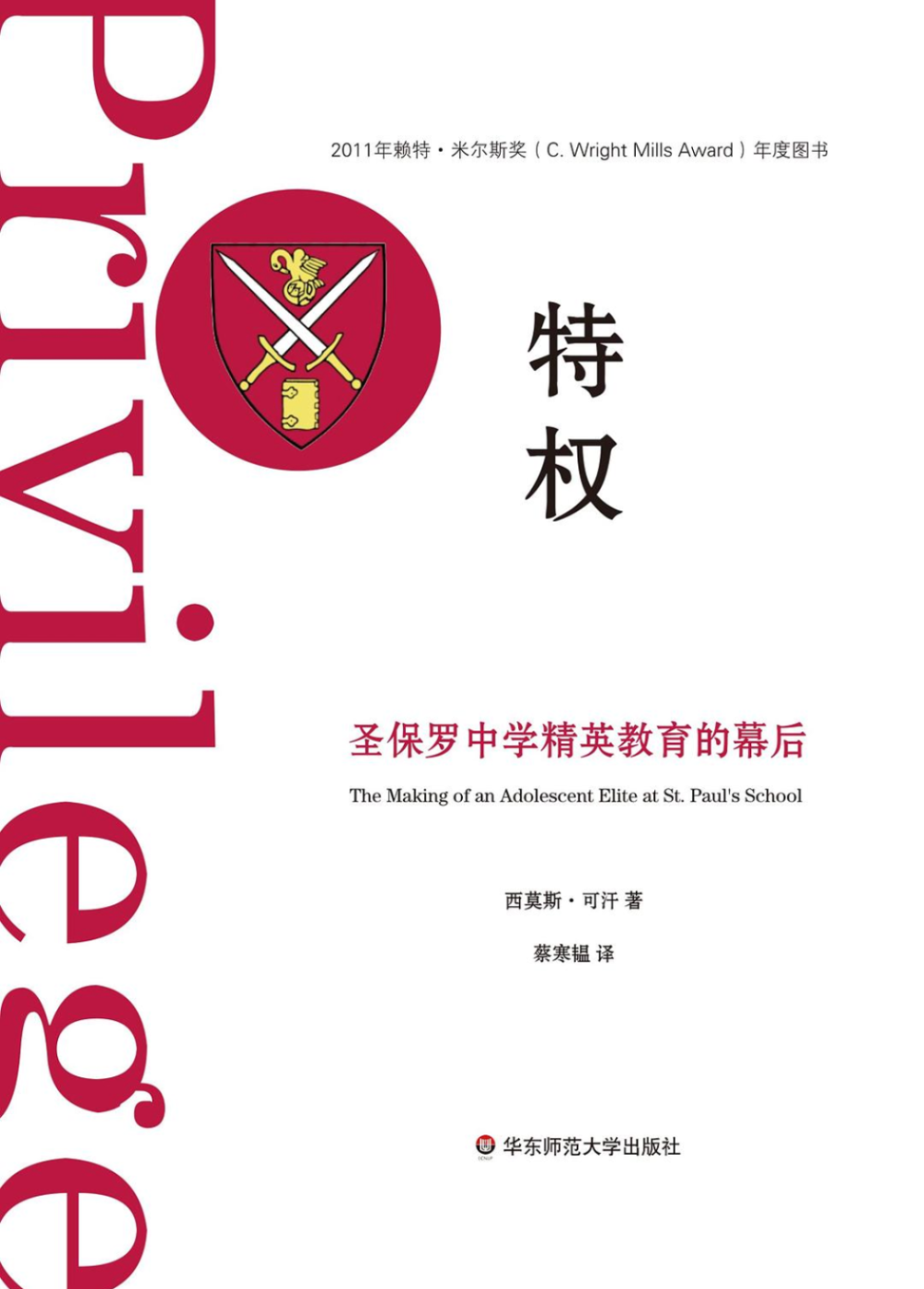 我要推荐给特别焦虑的家长一本书,就是写美国最顶尖私校圣保罗中学的《特权》,作者是这个学校毕业生,后来又在这个学校担任老师。在这所中学里,有一批美国顶级精英家庭的孩子,也有来自中产阶级和弱势群体中的非常聪明的孩子。