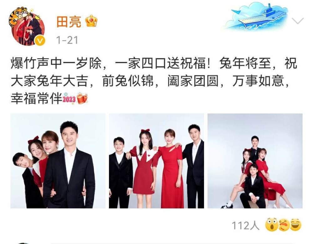 1月25日,网友们惊喜地发现田亮在社交平台发出来的一家四口合照,纷纷点赞说:“一家四口,用的同一张脸。”