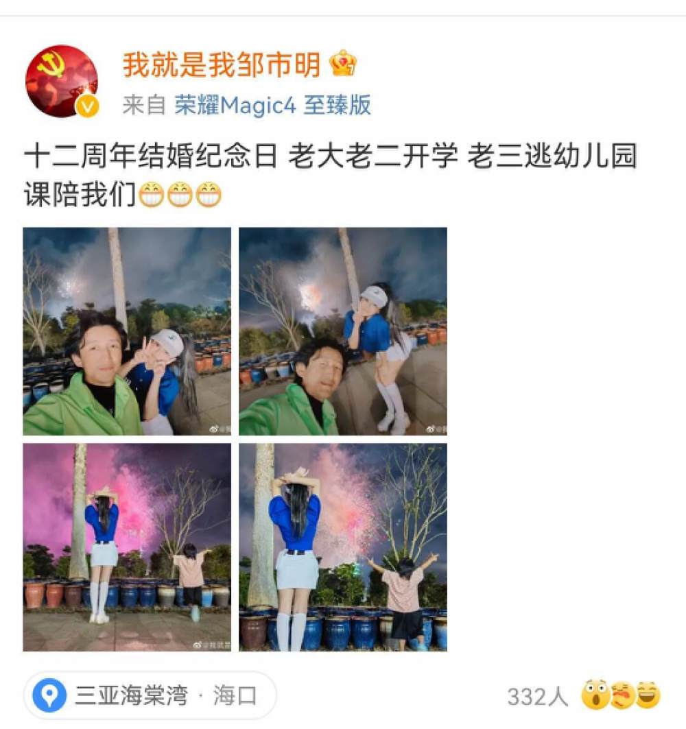 今年2月5日,是邹市明夫妻俩的十二周年纪念日,夫妻俩带小儿子出去游玩,可见,他们夫妻俩的感情依旧甜蜜如糖。
