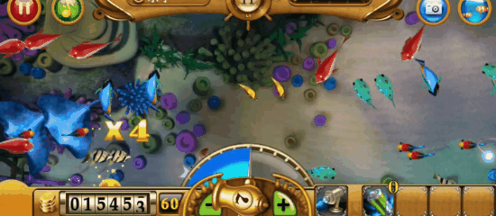 但《捕鱼达人》为了刺激用户的爽感做了诸多改动,比如把传统钓鱼改成了发射捕网,并且击中了鱼还会疯狂爆金币,这些设计无论在视觉还是听觉上,都能激发玩家的多巴胺。反观《Fishing Master》在这点上欠缺不少,很多时候玩家只能无聊地看着敌我双方“站撸”。