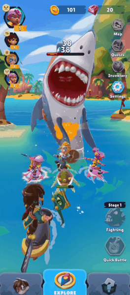 并且,游戏加入了放置游戏常见的挂机玩法,玩家只要登录在线即可自动战斗,轻松刷金币和材料。有意思的是,虽然主打的是休闲挂机,但游戏却拥有多人联机的选项,玩家可以与其他玩家一起做任务,攻坚BOSS,以及探索未知的区域。