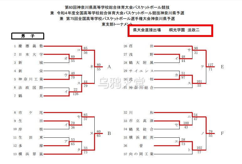 下图为2022年神奈川县大赛东支部赛区的对战表