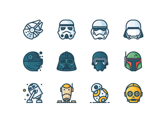首先,这套图标以柔和的色彩表现吸引了男士的眼球。Justas 的特殊技巧在于采用低调的调色板解决方案。后来你会发现他所有的作品看起来都很舒缓。没有杂色和霓虹灯使这种方法具有创新性!我也想承认我没能错过星球大战。我沉浸在童年回忆的愉快浪潮中。那你呢?