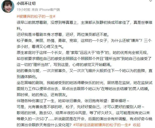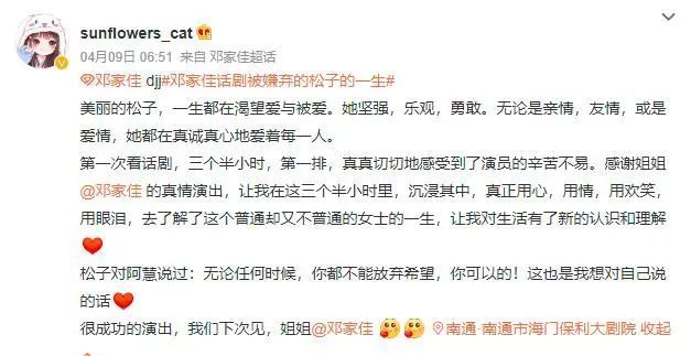 《被嫌弃的松子的一生》是邓家佳首部领衔主演舞台剧作品,她在演绎的过程中,用实力派演员的真心和精湛演技接受新的挑战,赋予了“松子”全新的生命力,让观众体验到邓家佳版的“松子”的独特魅力,沉浸式感受松子的一生。