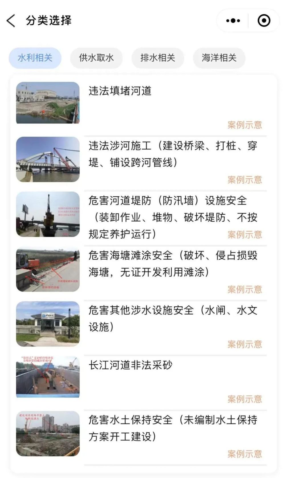 围绕比较专业的涉水违法行为,每个事项的名称旁边设置了“案例示意”,市民通过点击便可进行查阅,了解这类违法行为的表现形式、危害后果、法律依据等内容。对于重点事项,还制作了长图漫画,以图文形式进行展示,让市民有更直观的感受。