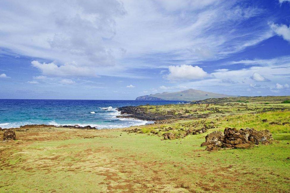 岛上最著名的是火山岩地貌和摩艾雕像。岛上没有河流湖泊,土壤深红多铁,温热的海风卷着鱼腥和牛粪味扑面而来。近年的全球气候变暖、海平面上升又对小岛产生了新的威胁。话虽如此,今天的复活节岛上,仍然有屈指可数的摩艾雕像,神情悲伤的背对着南太平洋。