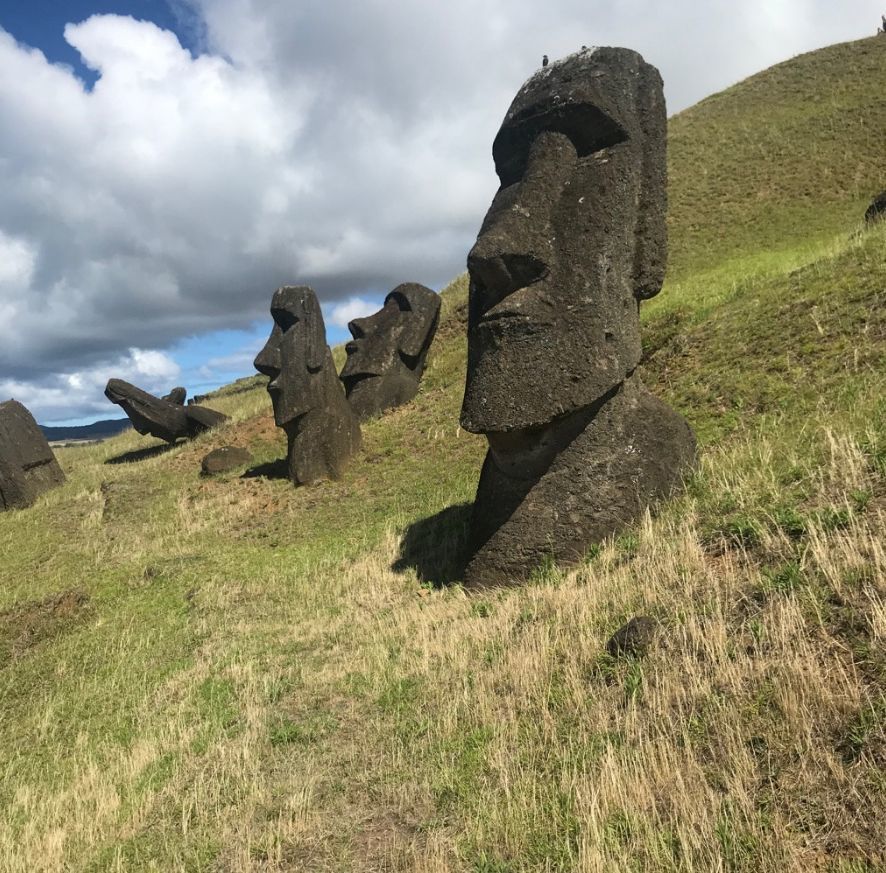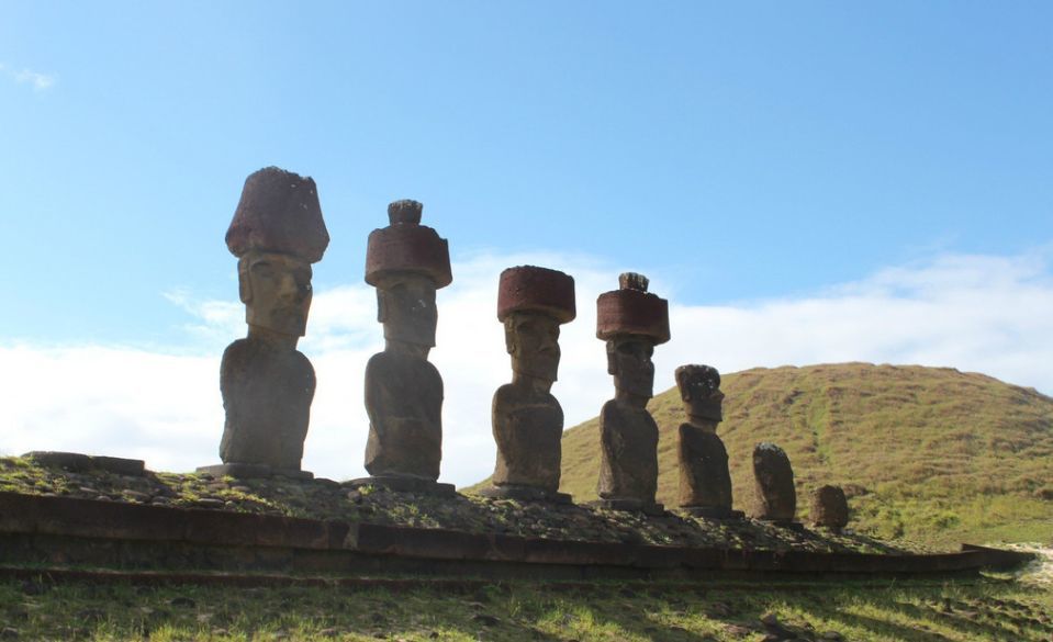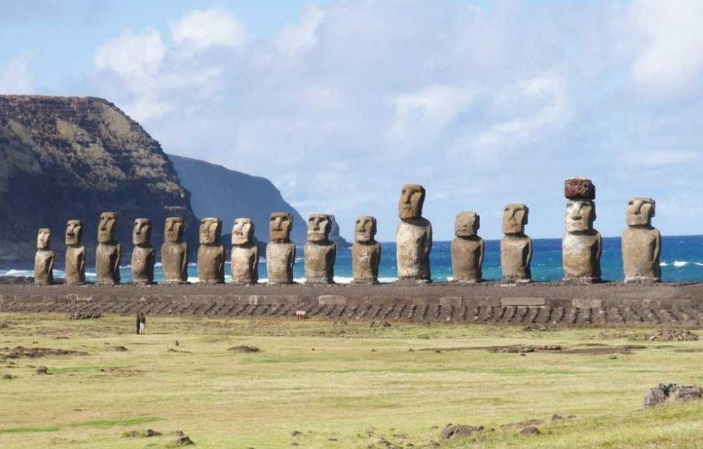 1960年智利9.5级地震引发的那场海啸将Tongariki的Moai向陆地推进了100多米,原先30个Moai只留下现在的15个,被修复后搬运回原先的位置。