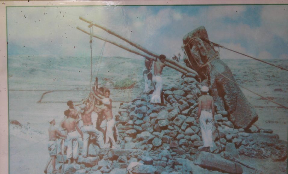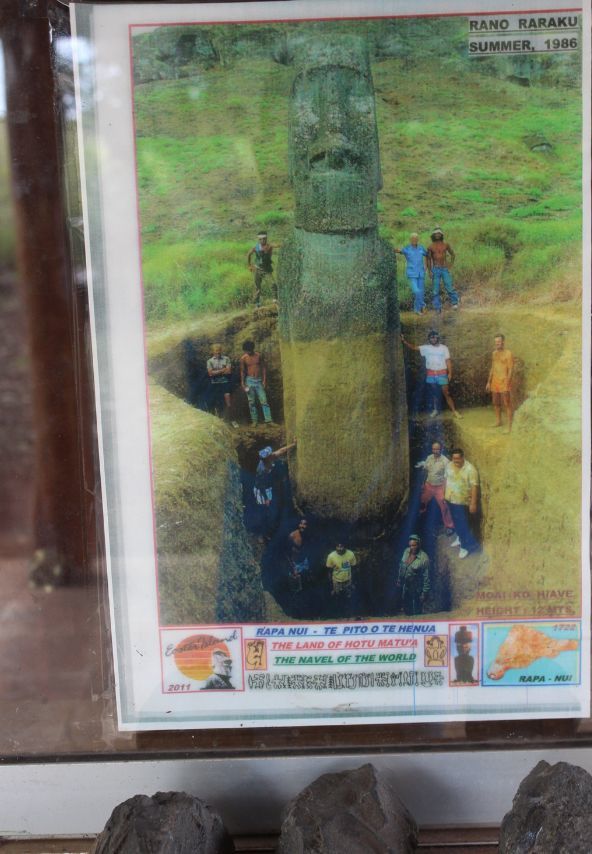 但即使海啸前的30个Moai 也是外来人修复的,因为早在航海家发现复活节岛之前,岛上所有的Moai基本上都因为原住部落间的战争而被推翻了,现在看见的所以站立的Moai 都是近现代修复的 。