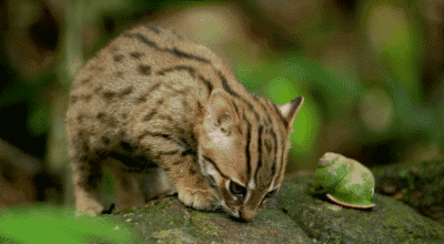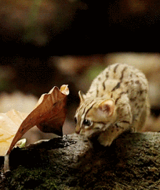 当它们穿行在雨林之中时,小巧的体型让它们显得十分轻快敏捷,无处不在的落叶就是它们最好的伪装,因为它们的体型小巧到能被落叶整个遮蔽起来,察觉到危险来临时,锈斑豹猫只需要往落叶底下一钻就能消失的无影无踪。
