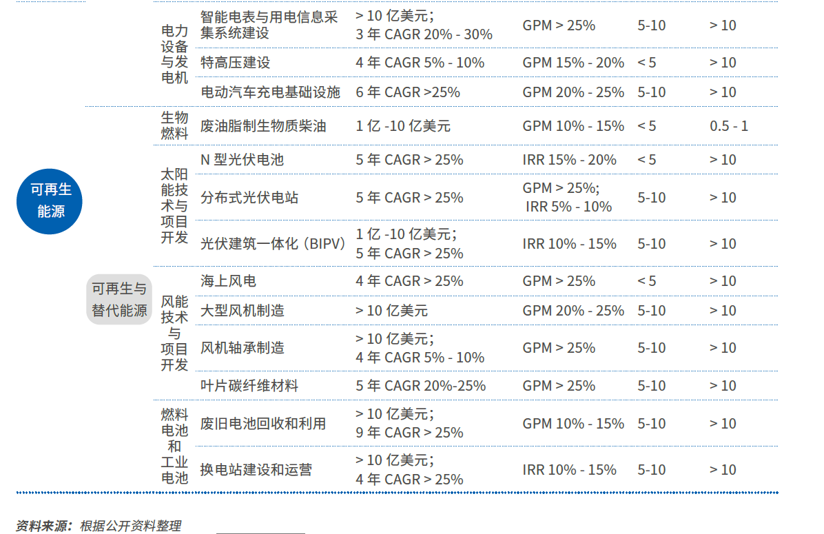 2022年的《地图》着重分析了其中两个领域(即循环经济和可再生能源)中的子产业投资机会。具体数据是这样的: