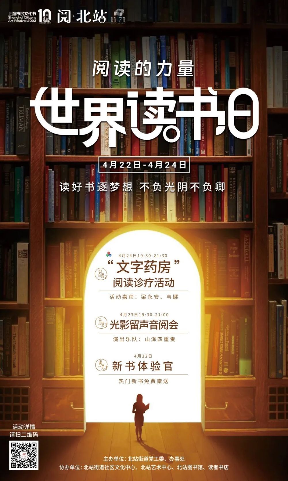 在第28个“世界读书日”来临之际,围绕2023年“遇见·对话·乐活”的北站主题活动,“阅读的力量”系列文化阅读活动正式开启。新书体验官、阅读诊疗会、光影留声音阅会……抓住四月的小尾巴,北站诚邀您一起品味书香、奔往知识的殿堂!