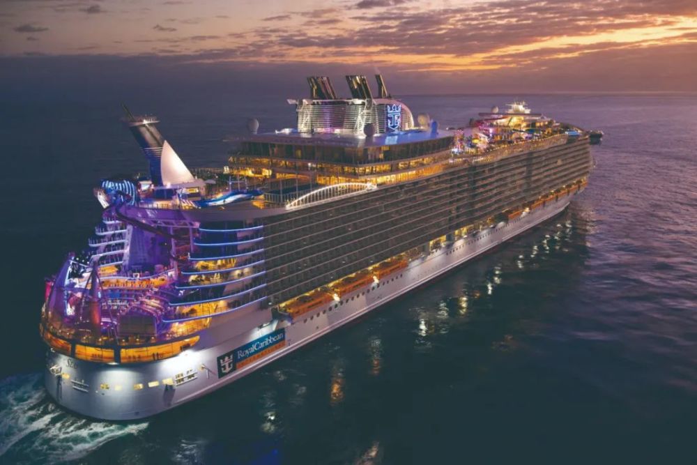 海洋交响号耗资97亿人民币建造,大小约是泰坦尼克号的5倍,共有16层,最多可容纳6680名乘客以及2200名船员,是一栋移动的海上酒店。船内不仅有游泳池、水上乐园、篮球场、溜冰场等设施,还有一个种植着1.2万株热带植物的中央公园、豪华的购物中心和13米高的专业攀岩墙。