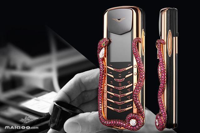 该款Signature Cobra眼镜蛇限量版镶钻手机的售价高达31万美元,约198万人民币,排名十大奢侈品手机第四。其机身镶有439颗红宝石,两颗是祖母绿。全球发行8部,国内仅1部。
