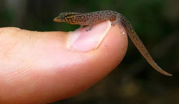 图为维尔京群岛侏儒壁虎:侏儒壁虎身长在18毫米左右,通常只有一枚硬币的大小,在3个英属维尔京群岛被发现:维尔京戈尔达岛、托托拉岛、蚊子岛。