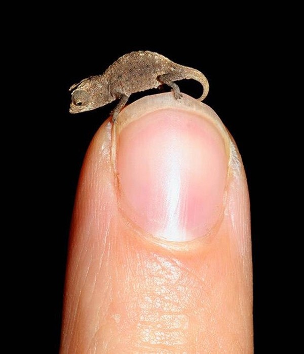 图为微米级变色龙:世界上体形最小的变色龙,平均身长在30毫米左右。