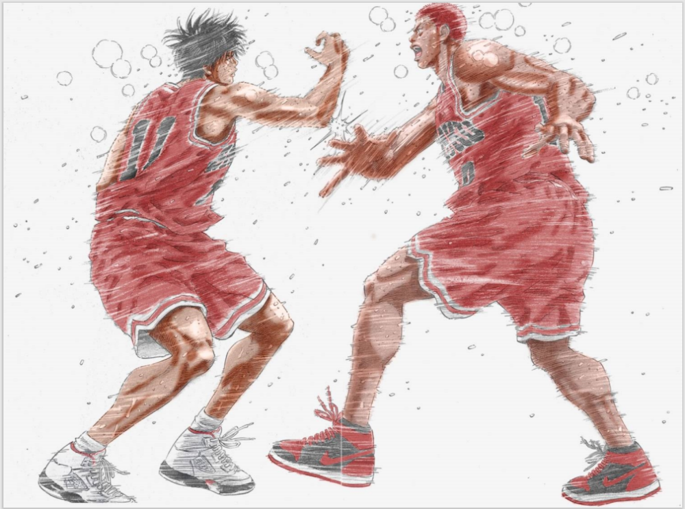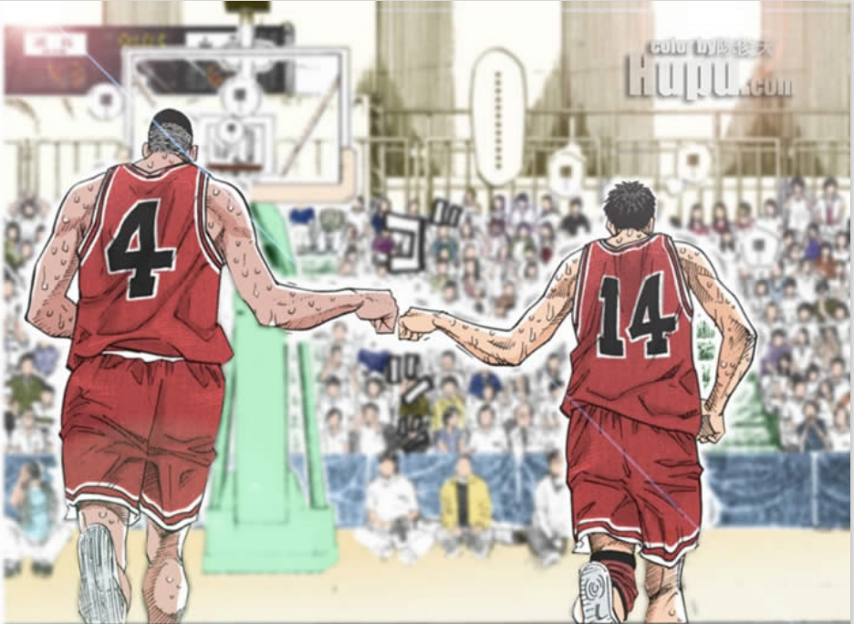 赤木与三井的默契配合之后,两人在回场时的击掌。