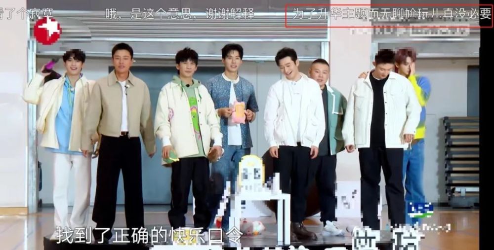 而成员们在纸条里找到化解烦恼的方法,不过是和“烦恼因子”握手、蒙住他们的眼睛,节目一共1小时40分钟,离结束不到半个小时,还在玩升级版小游戏。