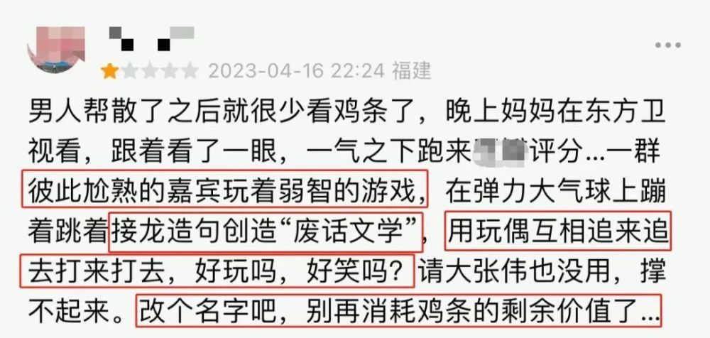 观众也忍无可忍吐槽,为什么不能设计有趣的游戏。