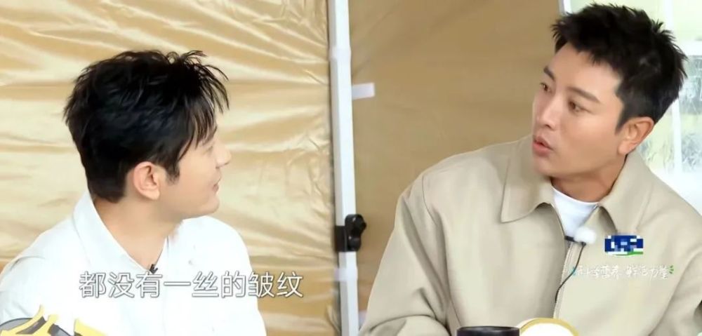 贾乃亮赶紧接话,表示从侧面看黄晓明,他没有缺陷,甚至鼻子、下巴都很完美,脸上也没有皱纹。这倒是夸到晓明哥心坎里了,他笑得很开心。