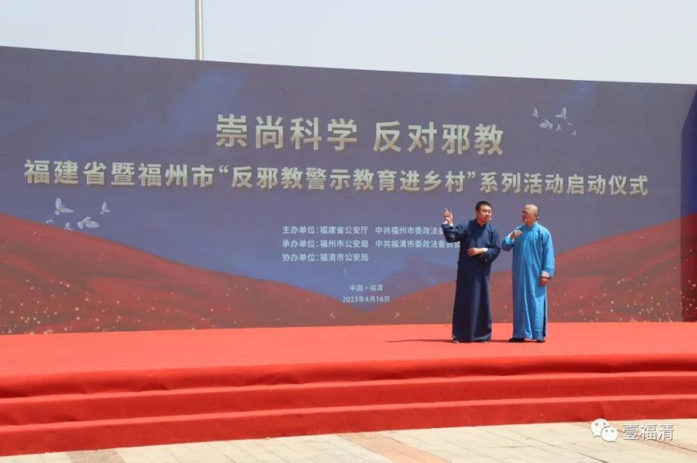 本次活动由福建省公安厅、中共福州市委政法委员会主办,福州市公安局、中共福清市委政法委员会承办,福清市公安局协办,旨在深入贯彻党的二十大精神和习近平法治思想,全面推进依法治省,增强广大群众识邪防邪拒邪反邪的意识和能力,营造崇尚科学、反对邪教的良好社会氛围,助力乡村振兴。福建省公安厅和福州市委政法委、福州市公安局、福清市委政法委、福清市公安局以及有关单位代表、师生、群众600余人参加活动。