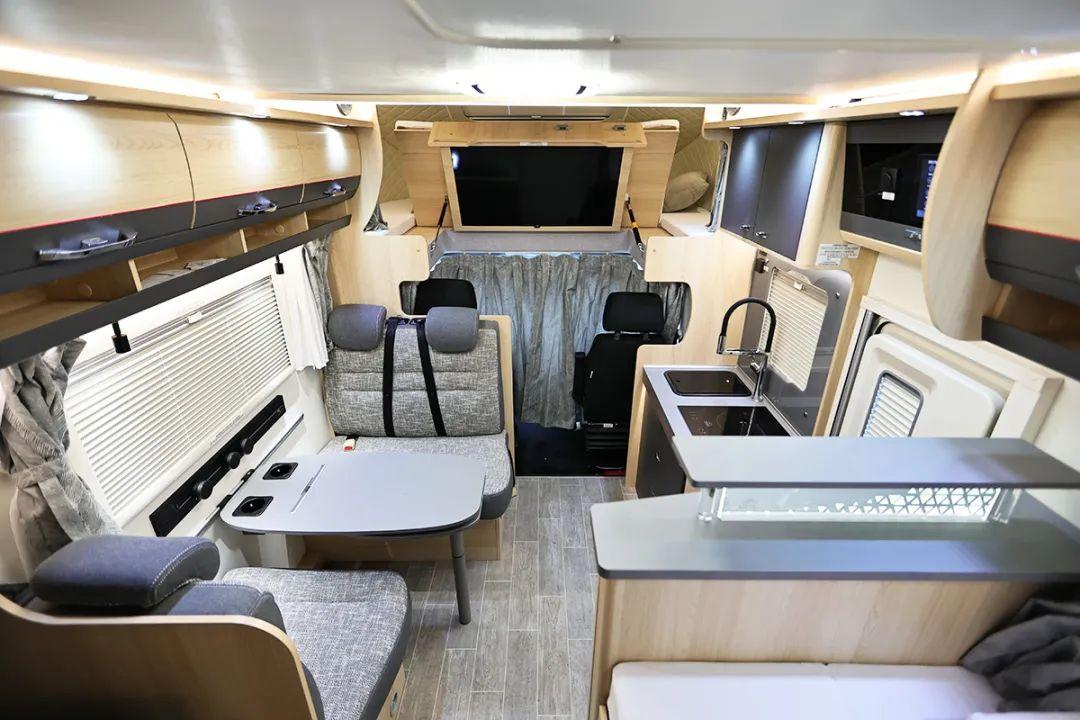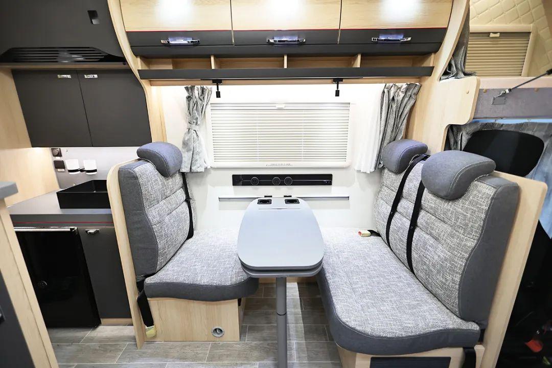 款麒麟C620玩家版-X房车,不走寻常路的客厅布局,3人位的双排沙发使室内空间宽敞至极。如此设计拓宽了车内过道的宽度;无拓展房车的居住人数一般是3人,像父母带着孩子一起开着房车旅行,这款3人沙发刚好可以满足日常就餐的空间。而在行驶中,带气囊的主副驾驶座椅必然是更舒适的,而孩子就可以坐在沙发向前的座位上欣赏窗外风景。
