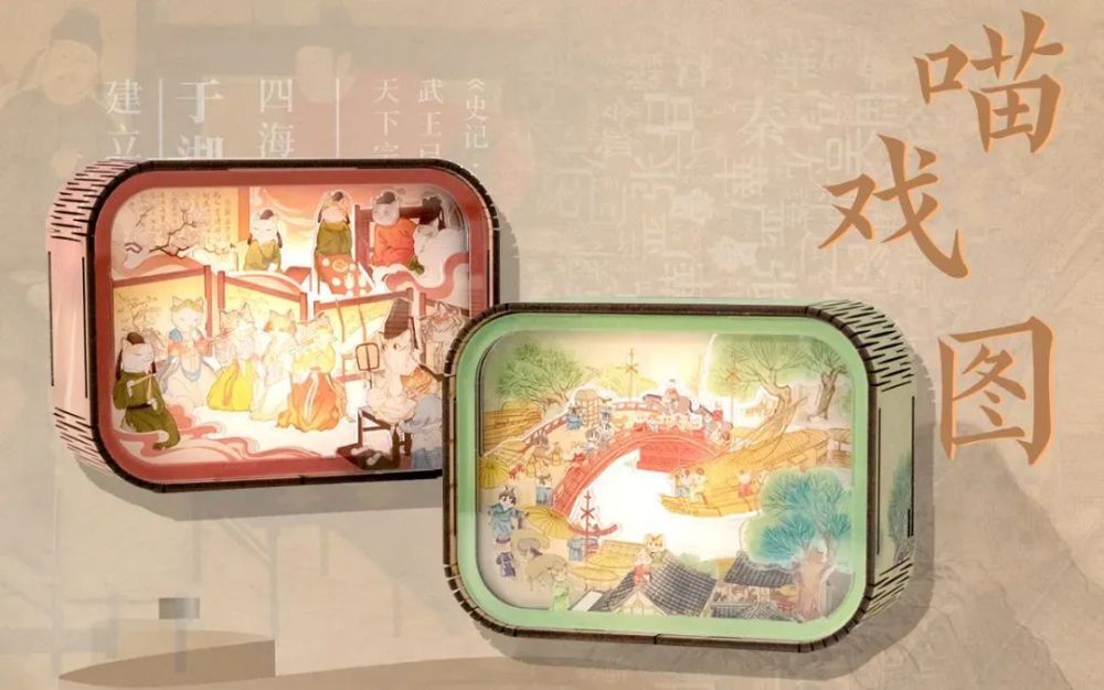 设计师以《清明上河图》和《韩熙载夜宴图》为设计灵感,取其局部经典画面,以原创手绘的形式,将人“拟猫化”,细致刻画出每一个猫咪的灵动神态。夜灯采用层叠结构设计,突出画面主次关系,抓取画中经典元素。夜灯采用层叠结构设计,突出画面主次关系,抓取画中经典元素,更加别致,富有层次感。同时,画面色彩饱和艳丽,作为装饰摆件为生活增添一抹亮色。点亮一盏名画小夜灯,让古画风韵走进人们的日常生活。