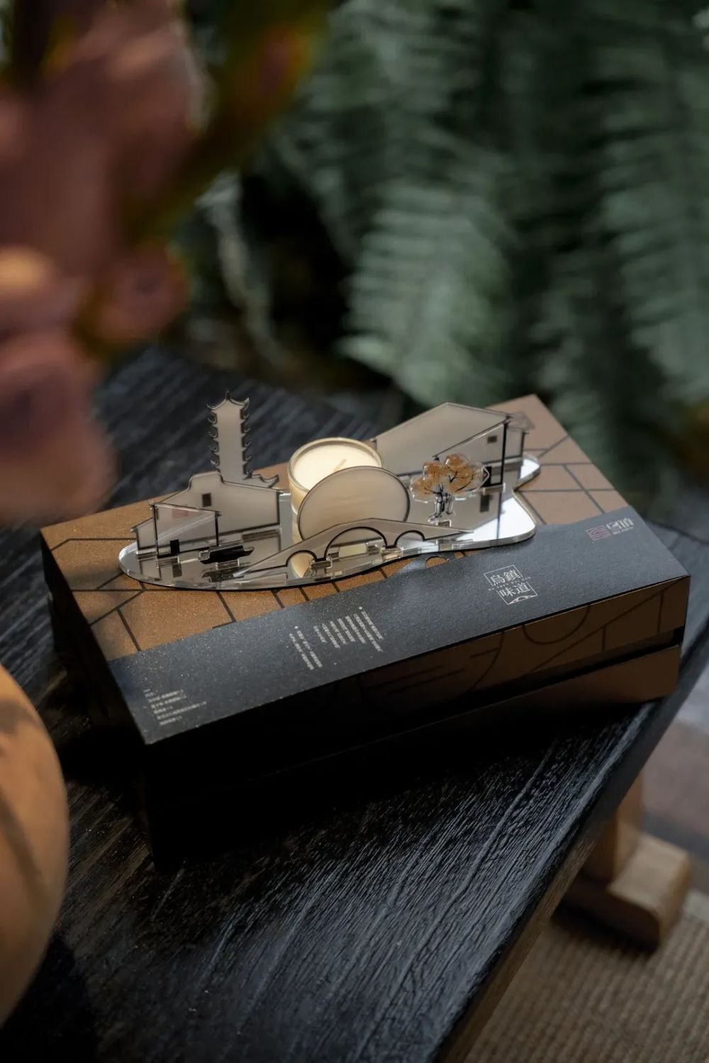 本香薰采用拼插式烛台底座,江南景是灵感缪斯,造景水乡民居摆台香盏,白墙青瓦小桥流水,自然地呈现出水墨画般的意趣美。浓淡深浅,诸景氤氲。点一盏香蜡,置于案头几榻,显得文雅清静。香薰蜡烛的味道,取自浙江桐乡特有的菊与桂。我们将秋日限定的草木记忆,尽数存下,于香味袅袅中,绘制一幅江南秋景图给你。