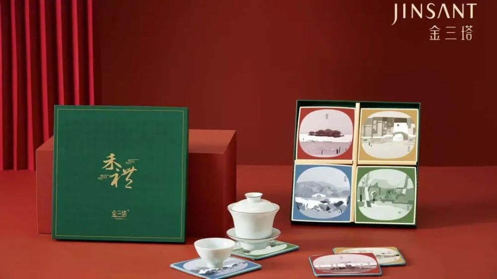 /嘉禾八景-丝绸艺术杯垫八件套/