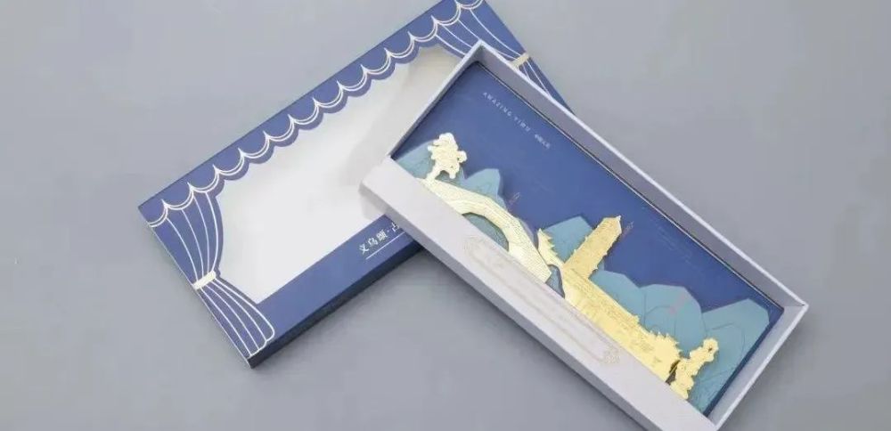 内含两盒书签,义乌古建筑书签是选取义乌三个国保单位黄山八面厅、古月桥、大安寺塔为主要元素,进行场景化设计。消费者既可以作为书签使用,也可以作为案头装饰摆放。红色义乌书签是围绕共产党宣言中文版首译地,提取当年出版封面版式的设计元素进行组合设计,讲述真理的故事。