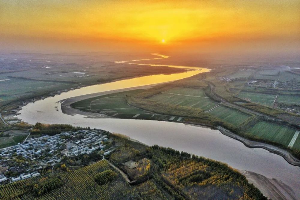 黄河奔腾运河流淌,彩霞明灭光影绰绰