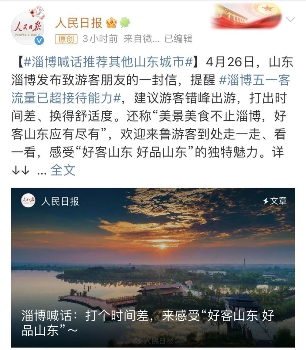 昨日,淄博市发布的《致广大游客朋友的一封信》中建议大家错峰出行,舒适旅游。