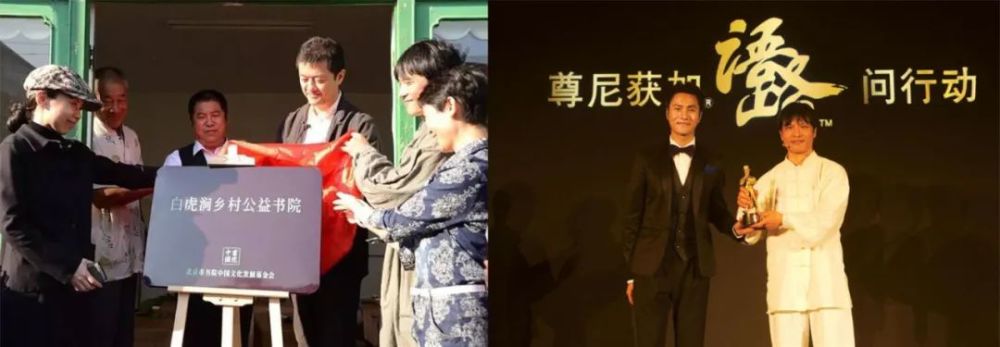 ▲和李亚鹏一起揭幕乡村书院&▲陈坤为万周迎颁奖