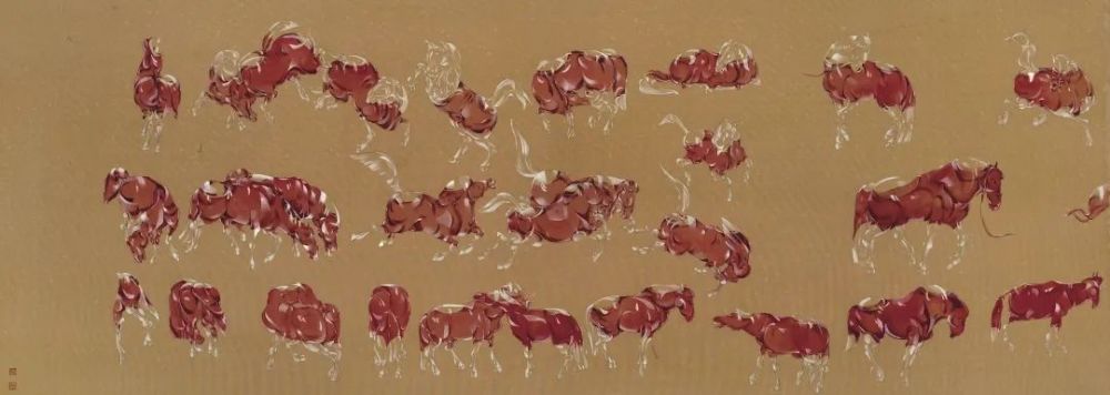 《摆马图》 41.5x115.4cm 绢本膠彩 2009